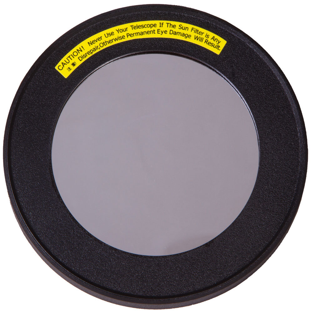 Солнечный фильтр Sky-Watcher предназначен для безопасного наблюдения Солнца. Он сделан из специальной астрономической пленки и подходит к рефракторам с апертурой 80 мм. Фильтр крепится на объектив оптической трубы, коэффициент светопропускания составляет 0,001%.