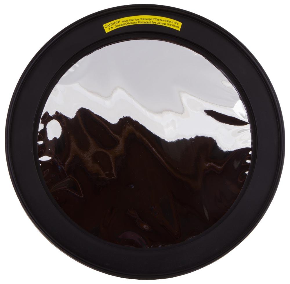 Солнечный фильтр Sky-Watcher для рефлекторов 200 мм – аксессуар, предназначенный для визуального наблюдения Солнца через зеркальный телескоп. Он разработан специально для рефлекторов Ньютона и устанавливается внутрь трубы. Сделан фильтр из светозащитной пленки, которая отсекает 99,999% вредного излучения и делает прямое наблюдение солнечной активности безопасным для зрения.
