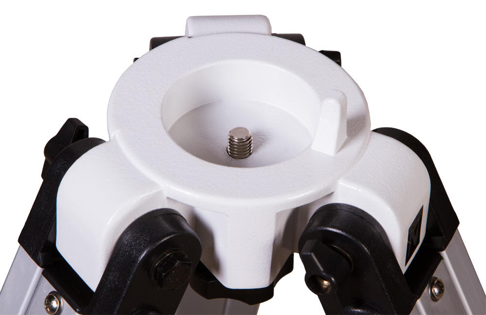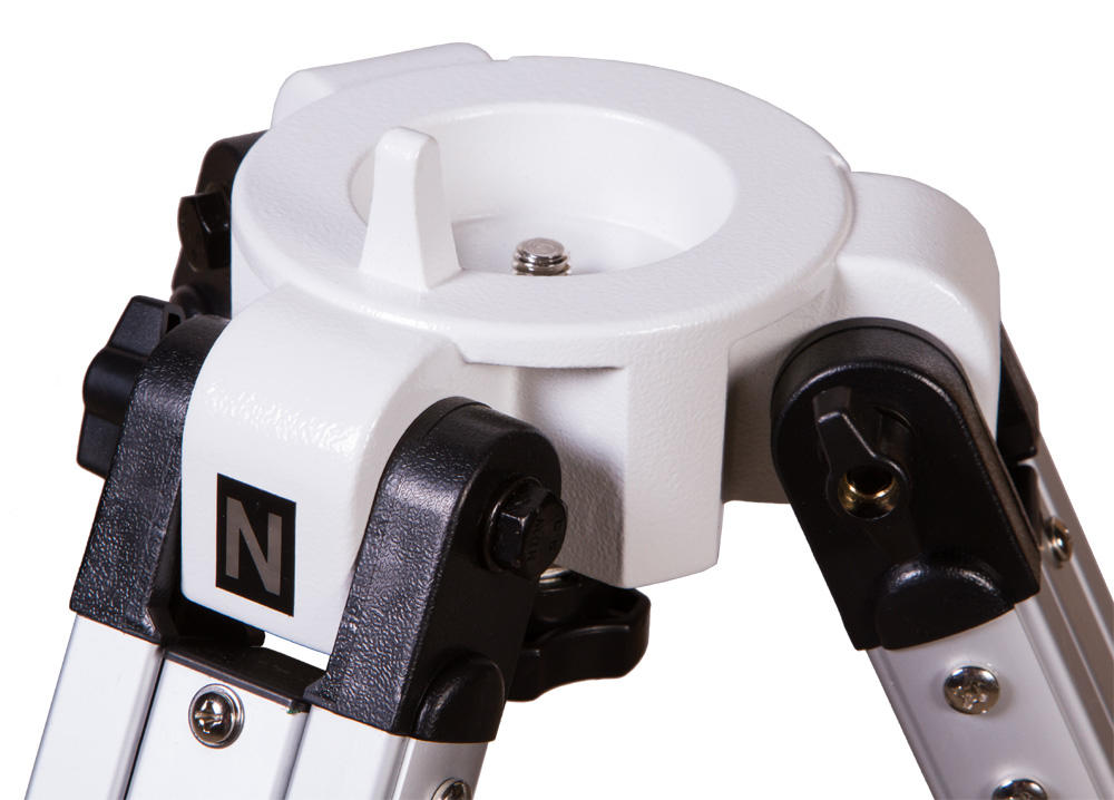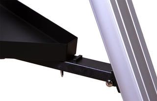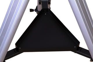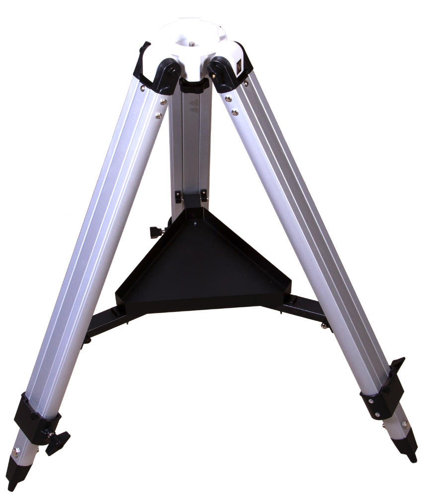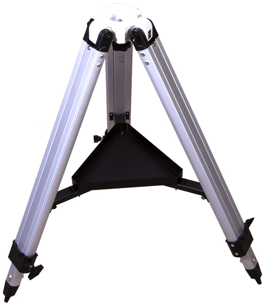 Эту треногу Sky-Watcher можно использовать с монтировкой EQ3-2. Тренога сделана из алюминия, она легкая и устойчивая. Максимальный допустимый вес носимого оборудования – 5,5 кг. Ножки треноги регулируются по высоте. Для изменения высоты следует ослабить стопорные винты, выдвинуть опоры на нужную длину и зафиксировать их снова. В комплекте есть лоток для аксессуаров, который устанавливается на центральную распорку.
