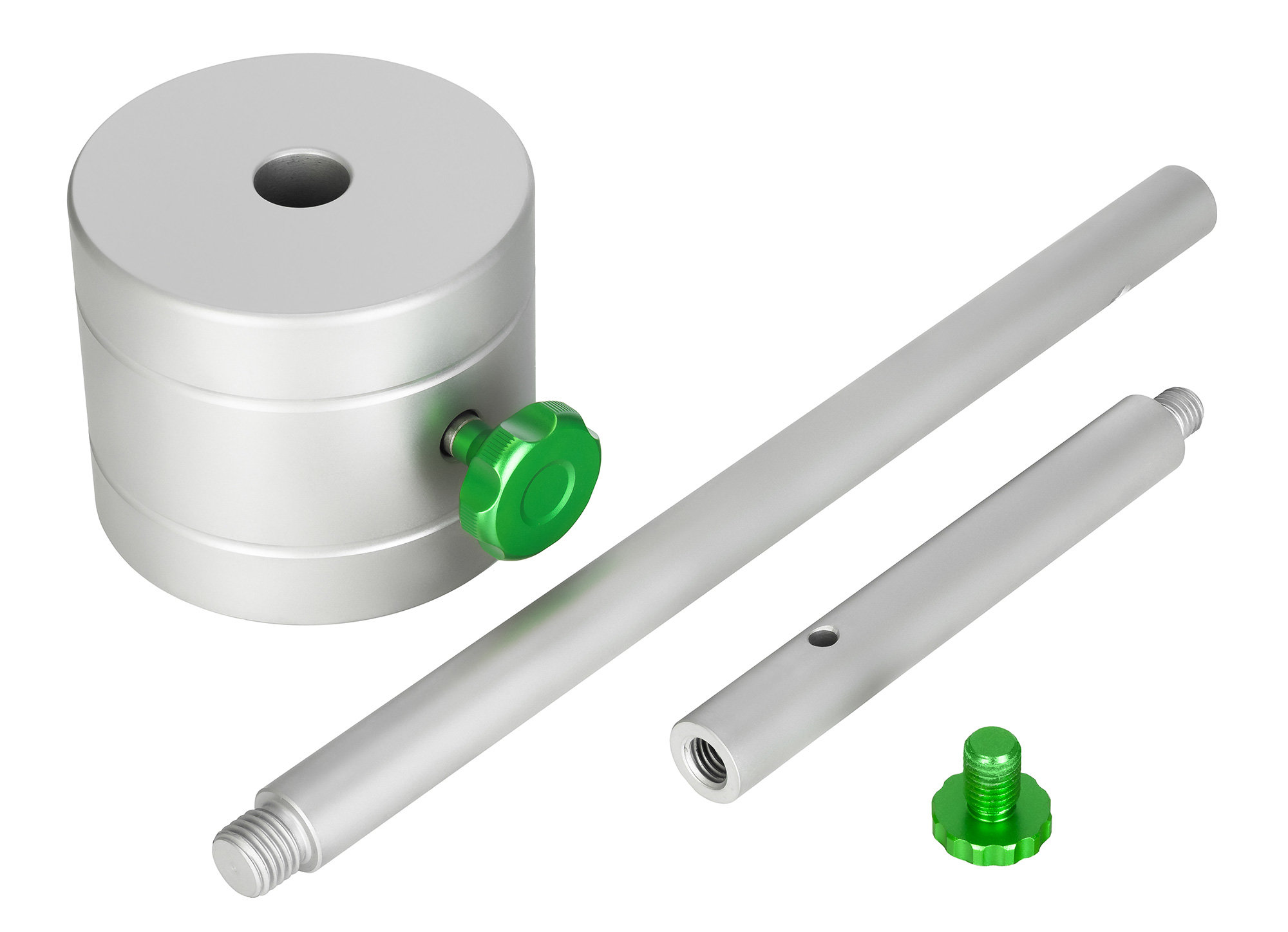 В комплекте с противовесом идут две штанги – основная установочная (диаметр – 2 см, длина – 31,4 см) и удлинительная (диаметр – 2 см, длина – 16,4 см). Удлинительная штанга используется в тех ситуациях, когда возникает необходимость вынести противовес еще дальше от оси конструкции, например, при работе с длинными или увесистыми оптическими трубами.