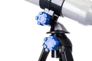 Настольная тренога с азимутальной монтировкой позволяет пользователю очень быстро освоить управление. Чтобы направить телескоп на объект, достаточно просто повернуть оптическую трубу вправо, влево, вверх или вниз. Для ориентирования по сторонам света в трубу встроен небольшой компас. Для наземных наблюдений рекомендуется использовать диагональное зеркало (в комплекте), которое исправляет «перевернутость» картинки, свойственную всем рефракторам.