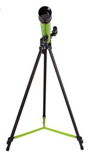 Азимутальная монтировка очень проста в управлении, ее быстро освоит даже ребенок. При помощи удобной ручки труба телескопа поворачивается вверх, вниз, вправо или влево. Телескоп комплектуется легкой и прочной треногой из алюминия. Высота треноги регулируется.