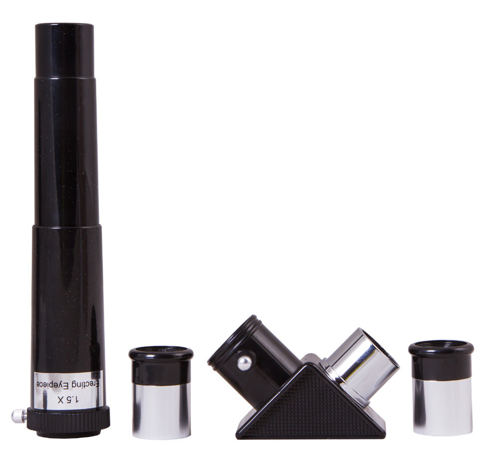У телескопа обширная комплектация – есть все необходимые аксессуары, чтобы немедленно приступить к наблюдениям. Для изучения наземных объектов мы рекомендуем установить на телескоп штатные оборачивающий окуляр и диагональное зеркало. Эти оптические аксессуары исправляют перевернутое изображение – вы сможете с удобством вести ландшафтные наблюдения.