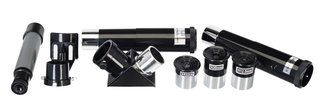 Оптическая схема – ахроматический рефрактор со стеклянными линзами, на оптические элементы нанесено антибликовое покрытие, а апертура составляет 70 мм. Объектив хорошо собирает свет, отлично работает по наземным объектам и достойно проявляет себя при визуальных наблюдениях космоса. Оптическая труба установлена на вилочную азимутальную монтировку, которая позволяет быстро наводить телескоп на нужные объекты. Микровинт на вертикальной оси дает возможность проводить более точную наводку.