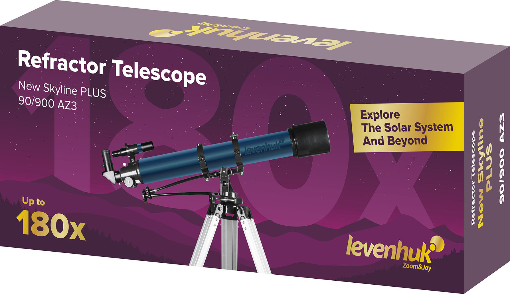 Levenhuk New Skyline PLUS 90/900 AZ3 – это классический длиннофокусный рефрактор, предназначенный для изучения планет Солнечной системы и объектов дальнего космоса. С его помощью вы увидите кратеры Луны, щель Кассини в кольцах Сатурна, спутники Юпитера и все объекты из каталога Мессье. Оптические возможности этого телескопа порадуют не только начинающего, но опытного любителя астрономии.