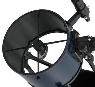Оптическая труба телескопа собрана на основе ферм, что существенно облегчает как перевозку инструмента, так и его хранение в ограниченных домашних условиях. Устойчивость всей астрономической конструкции обеспечивает монтировка Добсона, изготовленная из обработанного дерева. Она обладает грузоподъемностью, достаточной для удержания массивной оптической трубы весом 20,5 кг, при этом собственный вес монтировки составляет 16,5 кг. Комплект для наблюдений готов к работе из коробки, поскольку уже включает основные аксессуары: оптический искатель 8х40, два окуляра Plössl – 10 и 25 мм – с посадочным диаметром 1,25", вентилятор для термостабилизации главного зеркала и чехол.