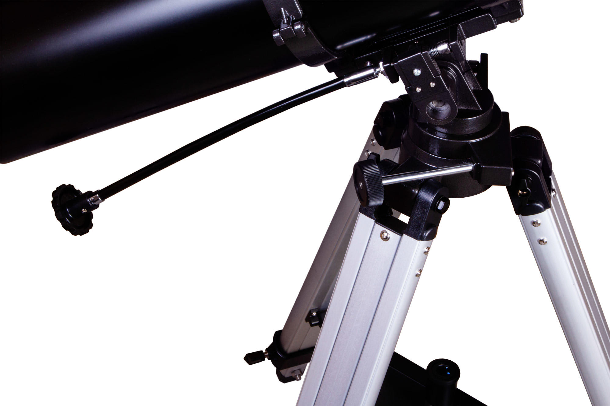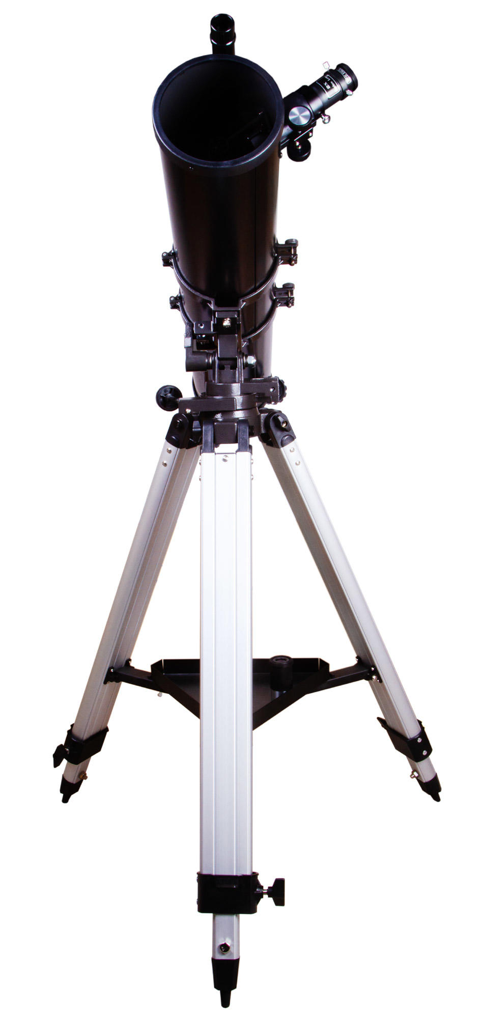 Телескоп комплектуется азимутальной монтировкой. Для наведения на объект нужно лишь развернуть оптическую трубу в нужную сторону. Благодаря простому управлению Levenhuk Skyline BASE 110S понравится тем, кто только делает первые шаги в исследовании космоса и ищет легкий в освоении телескоп. Монтировка устанавливается на алюминиевую треногу, высоту ножек которой можно регулировать. Есть лоток для аксессуаров.