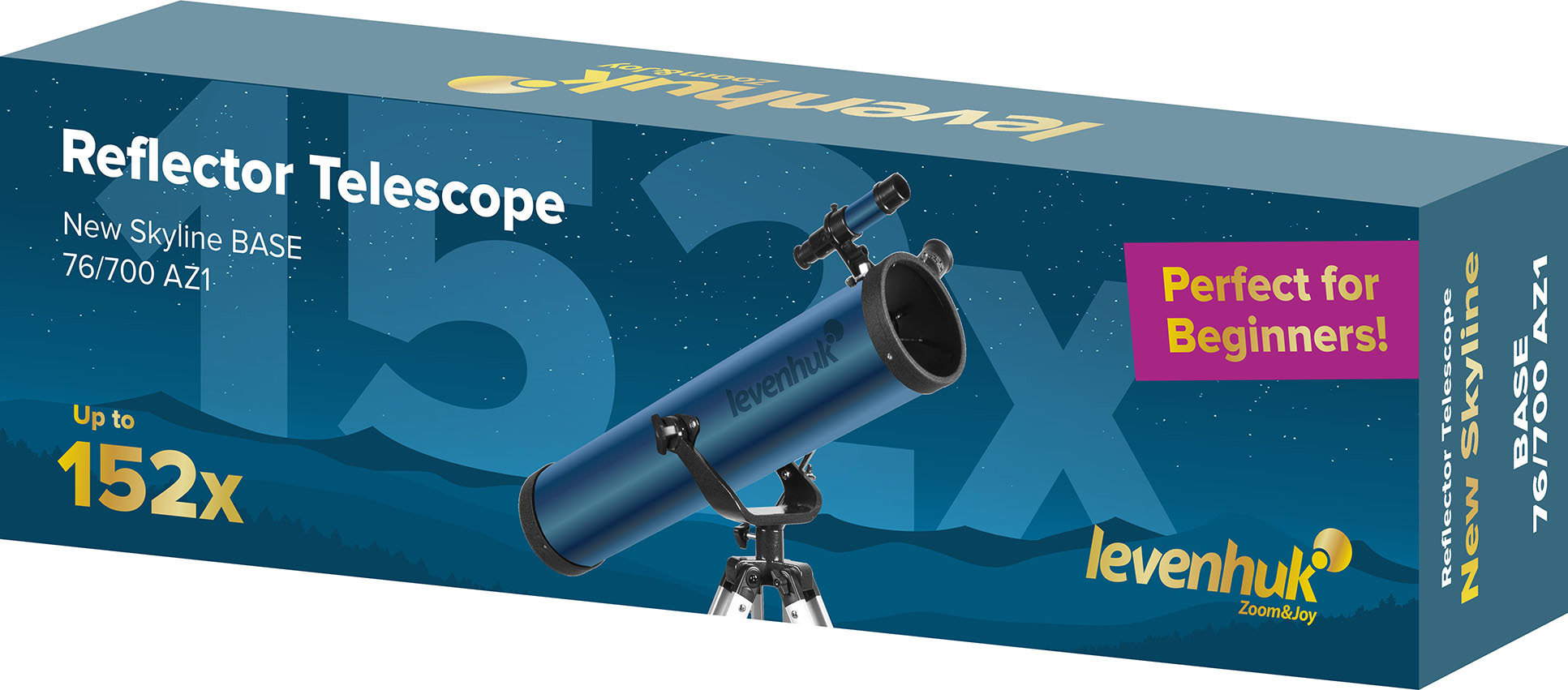 Levenhuk New Skyline BASE 76/700 AZ1 – простой в освоении телескоп на азимутальной монтировке, который идеально подходит для начинающих. С его помощью можно увидеть лунные кратеры, планеты Солнечной системы, двойные звезды, например, Альбирео и Мицар, крупные шаровые и рассеянные скопления, а также почти все объекты каталога Мессье. Он поставляется со всеми необходимыми принадлежностями: после распаковки можно сразу приступать к наблюдениям.