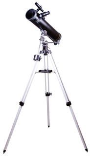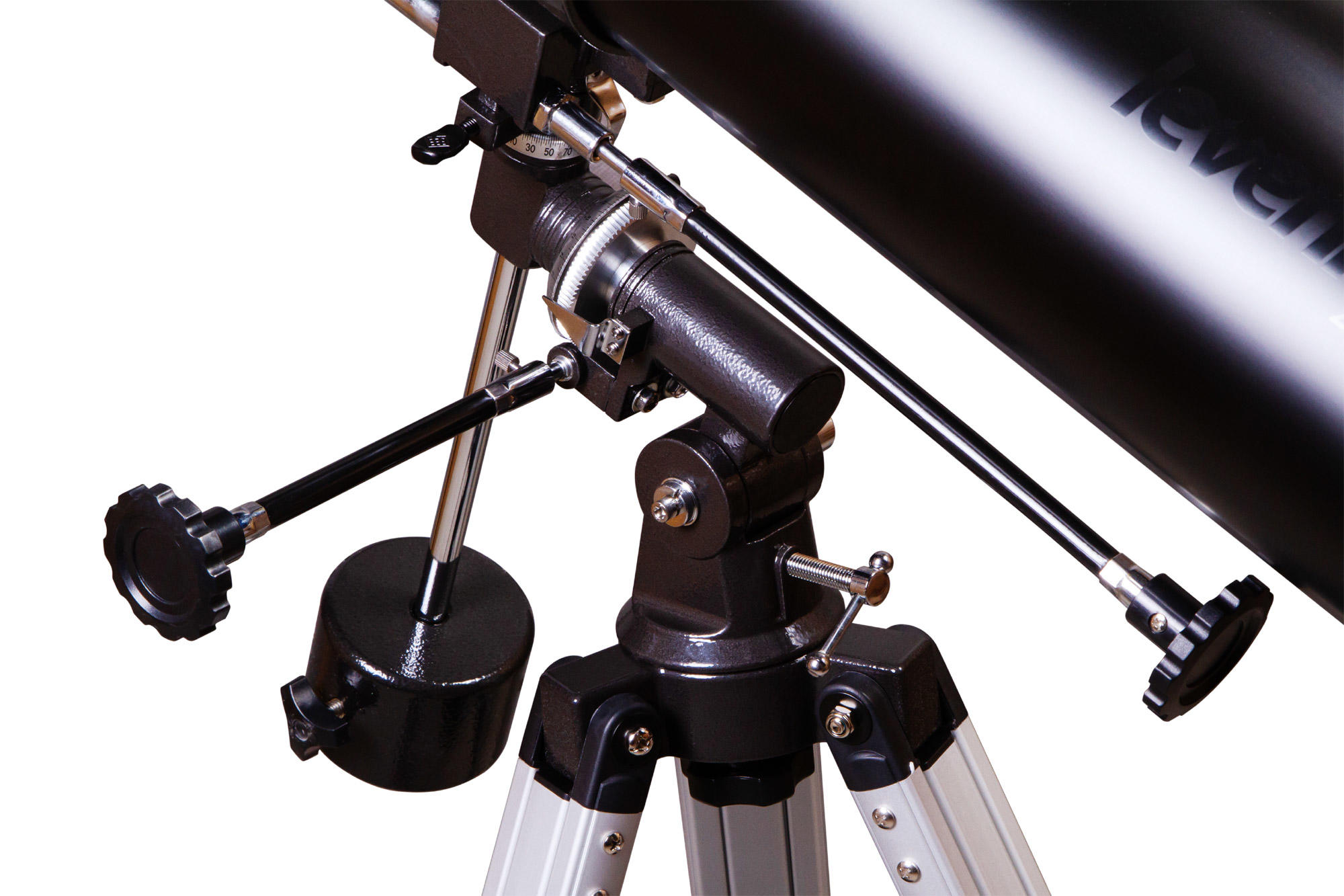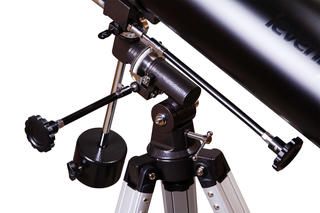 Телескоп установлен на экваториальную монтировку. С ее помощью удобно вести астрономические объекты по небосклону, но на освоение управления требуется некоторое время. Монтировка фиксируется на алюминиевой треноге. Ее можно поставить практически где угодно, так как высота ножек регулируется в широком диапазоне. Есть лоток для аксессуаров.
