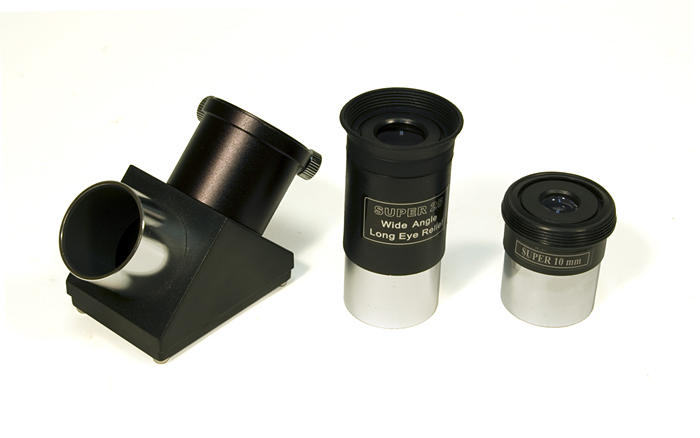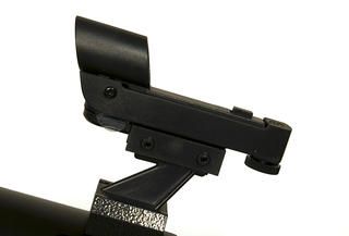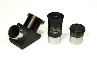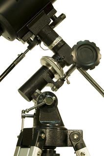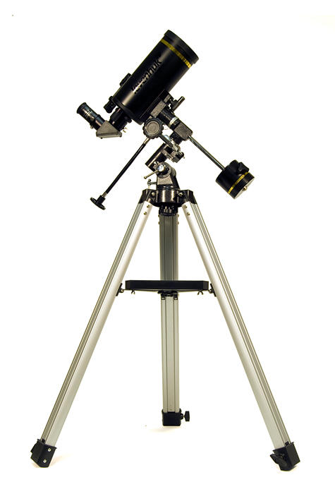 Линзовые поверхности телескопа имеют просветляющее покрытие, которое обеспечивает максимальное светопропускание, а отражающие – защитный слой, увеличивающий срок их службы. Очень компактная и легкая алюминиевая труба установлена на экваториальную монтировку, оснащенную ручками тонких движений и допускающую установку электропривода часовой оси (приобретается отдельно). Такая монтировка имеет специальные координатные круги, с помощью которых, после несложной настройки, можно находить объекты по их экваториальным небесным координатам, а также сопровождать суточное движение объекта вращением только одной ручки. Тренога регулируется по высоте и имеет удобную полочку для принадлежностей, а коллиматорный искатель с красной точкой позволит быстро навести телескоп на нужный участок неба. С телескопом поставляются 2 окуляра, имеющие поле зрения 52 градуса и фокусные расстояния 10 мм и 25 мм и дающие с телескопом увеличение 125 и 50 крат. Линзы окуляров изготовлены из стекла и имеют многослойное просветление. Фокусировка выполняется подвижкой главного зеркала с помощью удобной ручки с плавным ходом. Посадочный диаметр под окуляры стандарта 1,25" (31,75 мм) позволяет использовать с телескопом множество других имеющихся на рынке окуляров, помимо входящих в комплект. С их помощью увеличение телескопа может быть поднято до полезного предела в 180 крат. На выходной втулке имеется стандартная Т-резьба, которая, через дополнительное переходное кольцо, позволяет присоединять к телескопу зеркальную фотокамеру и производить съемку Луны и других ярких объектов.