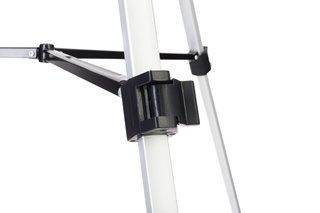 Ахроматическая оптическая схема и антибликовое покрытие линз совершенствуют качество изображения, избавляя его от аберраций. Оптика телескопа выполнена из стекла, а корпус трубы и тренога – из металла. Для наведения используется азимутальная монтировка классического типа, позволяющая перемещать трубу вверх-вниз и вправо-влево. С наведением на астрономические объекты справится пользователь с любым уровнем подготовки. Дополнительно в этом поможет оптический искатель, устанавливаемый на трубу. Высоту треноги можно регулировать в широком диапазоне – это особенно удобно при наблюдениях в телескоп большой компанией.
