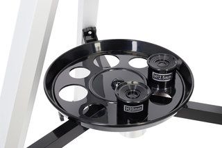 Оптических аксессуаров в комплекте более чем достаточно: 4 окуляра (в том числе оборачивающий), диагональное зеркало, мощная линза Барлоу, оптический искатель. Отдельного упоминания заслуживает книга знаний «Космос. Непустая пустота» – красиво иллюстрированный гид по ближнему космосу. Начинающий астроном почерпнет отсюда множество интересных сведений, которые помогут вспомнить азы астрономии и уверенно приступить к освоению звездного неба.