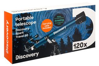 Levenhuk Discovery Spark Travel 60 – это ахроматический телескоп-рефрактор в пластиковом кейсе. Он отлично подойдет для выездов на загородные астронаблюдения начального уровня. Наилучшие результаты прибор продемонстрирует при наблюдениях Луны, а яркие объекты ближнего и дальнего космоса можно будет увидеть как светящиеся точки, без деталей. При свете дня телескоп тоже можно использовать – в качестве зрительной трубы для изучения природы и любых отдаленных объектов.