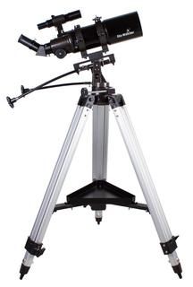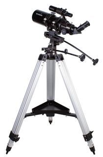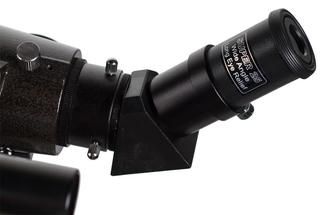 Диаметр ахроматического объектива составляет 80 миллиметров. Оптика формирует качественную картинку с минимумом хроматических аберраций. Полное многослойное просветление оптических элементов обеспечивает высокое пропускание света. Телескоп комплектуется окулярами 25 мм и 10 мм. Мы рекомендуем начинать наблюдения с длиннофокусного окуляра – у него более широкое поле зрения. Затем выбранный объект можно более подробно рассмотреть в окуляр 10 мм.