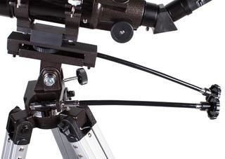Оптическая труба фиксируется на монтировке при помощи крепежных колец. Телескоп комплектуется азимутальной монтировкой AZ3. С ее помощью можно плавно и точно наводить оптическую трубу. У монтировки есть механизмы тонких движений по вертикали и горизонтали с удобными гибкими ручками.