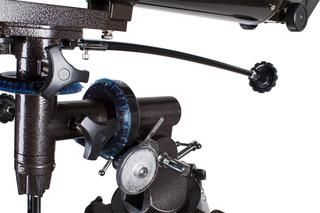 Телескоп комплектуется экваториальной монтировкой EQ2 – она компенсирует суточное движение небесных тел и делает ведение астрономических объектов более удобным. Механизмы тонких движений по обеим осям позволяют плавно и точно наводить телескоп. Монтировку можно усовершенствовать, оборудовав ось прямого восхождения моторным приводом (в комплект не входит). Монтировка установлена на алюминиевую треногу регулируемой высоты.