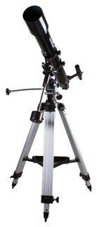 Диаметр ахроматического объектива составляет 90 миллиметров. Оптика формирует изображение высокого качества с хорошей детализацией и без хроматических искажений. На оптические поверхности нанесено многослойное просветление. Телескоп комплектуется окулярами 25 мм и 10 мм. Мы рекомендуем применять 25-миллиметровый окуляр для поиска астрономических объектов и обзорных наблюдений. 10-миллиметровый окуляр подойдет для изучения объектов в деталях.