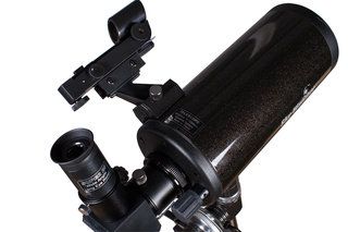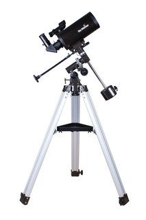 Оптическая труба собрана по катадиоптрической схеме Максутова-Кассегрена. При объективе диаметром 90 мм труба отличается весьма компактными размерами, поэтому ее удобно брать с собой для загородных наблюдений. Эта модель комплектуется двумя окулярами. Начинать наблюдения лучше с окуляра с фокусным расстоянием 20 мм. Он имеет более широкое поле зрения и позволяет охватить взглядом большее пространство. Для более детального изучения небесных тел следует использовать окуляр с фокусным расстоянием 10 мм.