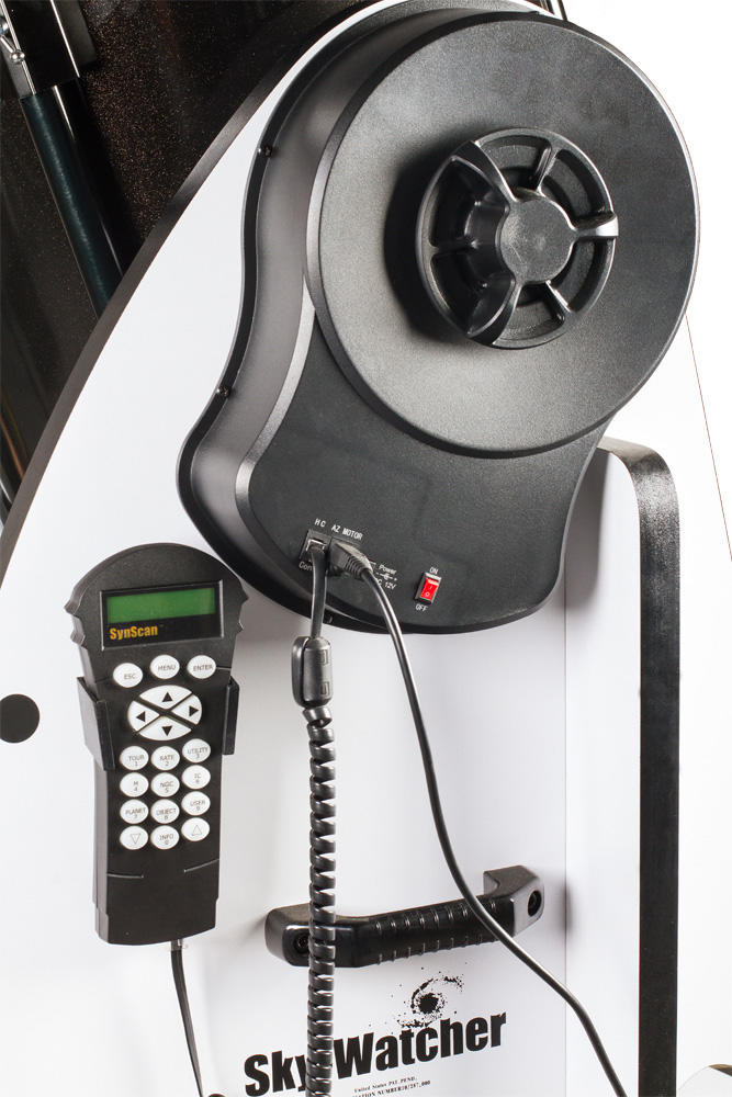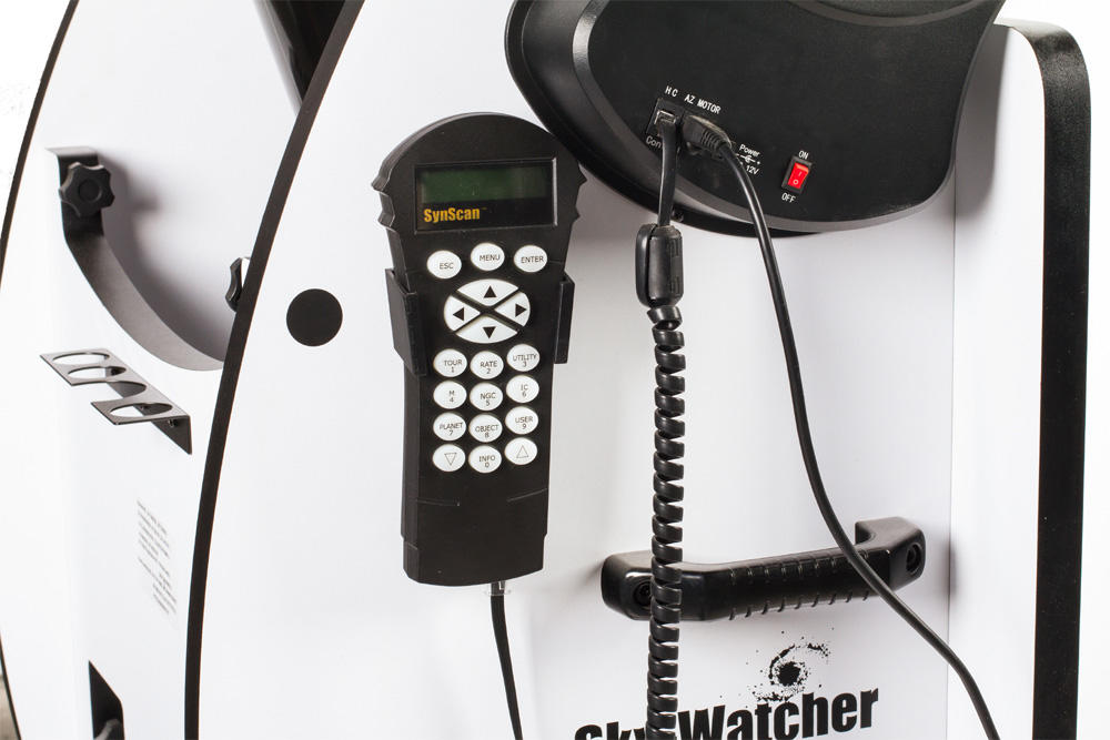 Оптическая труба устанавливается на монтировку Добсона с системой автонаведения SynScan AZ. База данных монтировки содержит информацию о 42 900 астрономических объектов. Чтобы начать наблюдения, пользователю нужно лишь выбрать любой из них и нажать на кнопку GoTo на пульте управления. Система автонаведения наведет телескоп на небесное тело и будет передвигать трубу по время наблюдений, чтобы нужный вам объект всегда оставался в центре поля зрения. Монтировка имеет азимутальную ориентацию, поэтому подходит для визуальных наблюдений и астрофотографии с короткими выдержками.