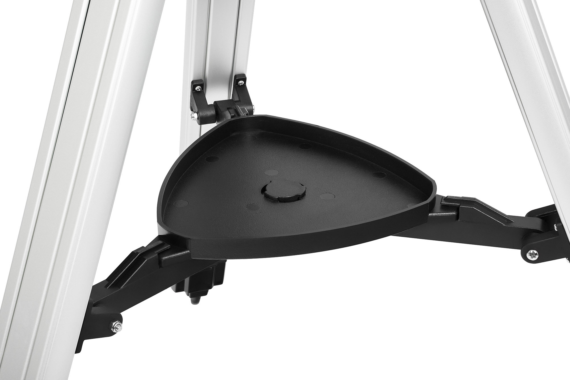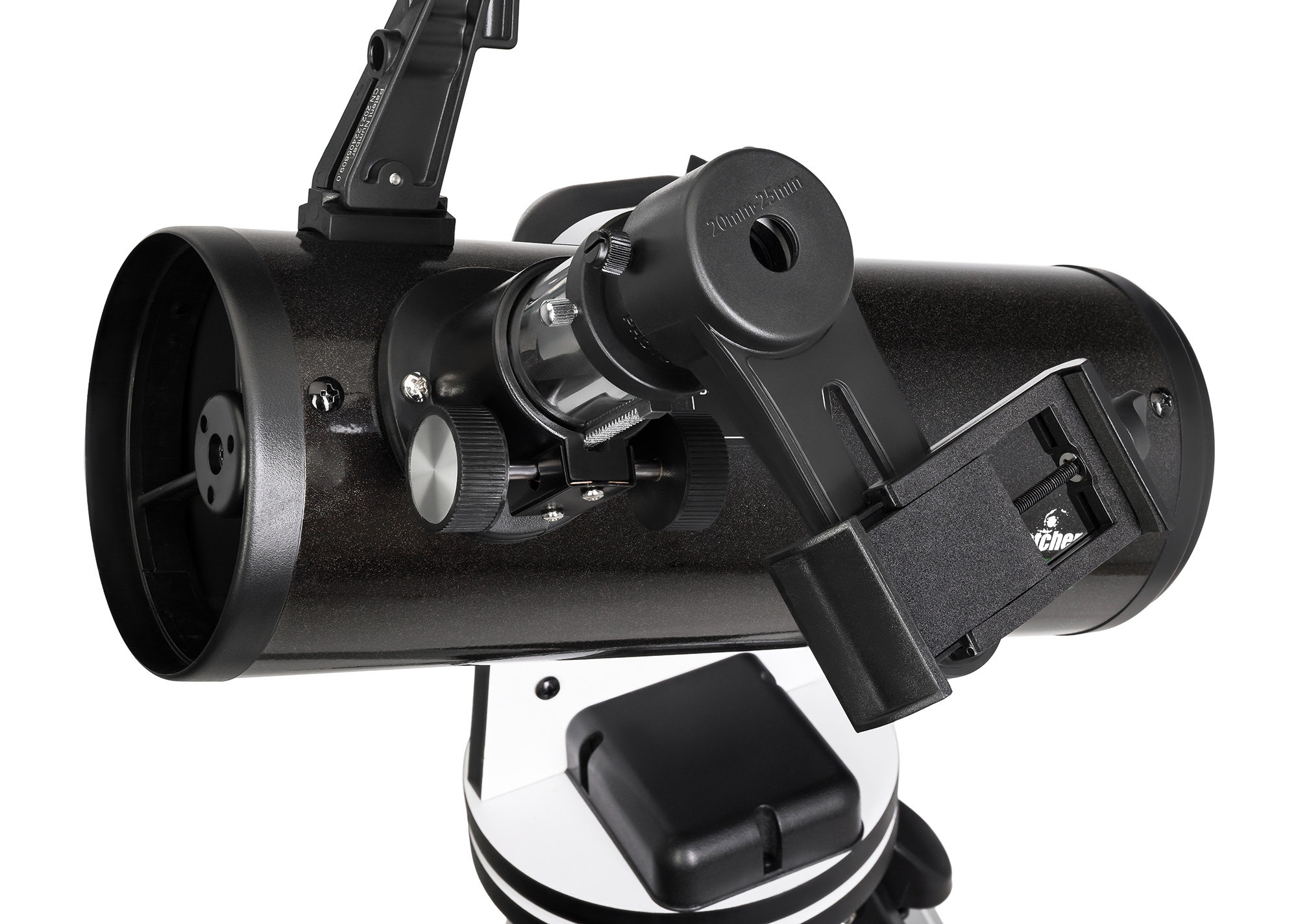 Начинать работу с Sky-Watcher N100 mini Virtuoso GTi можно прямо из коробки – в комплект поставки уже включены основные аксессуары: оптический искатель 5х24 (для ручного поиска и наведения на небесные тела), окуляры PHOTO с фокусным расстояние 10 мм и 20 мм, адаптер для смартфона, алюминиевая тренога с лотком для аксессуаров. Для полноценной работы телескопа потребуется подключение к сети постоянного тока. Прибор можно использовать с настольной подставкой или установить на треногу.
