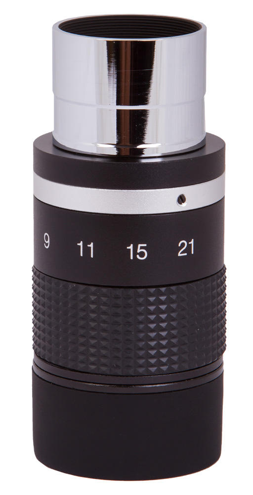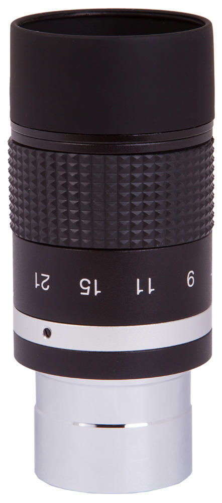 Окуляр Sky-Watcher Zoom 7–21 мм – это универсальный аксессуар, способный заменить несколько окуляров. Регулируя фокусное расстояние, вы сможете менять увеличение непосредственно в процессе наблюдений. При этом фокусировка при смене кратности остается стабильной. На корпусе окуляра имеется специальная шкала, на которую нанесены значения фокусного расстояния. Обратите внимание, что при большом увеличении поле зрения будет меньше.