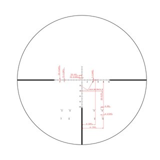 Конструктивное расположение прицельной сетки в первой фокальной плоскости (фокальной плоскости объектива) определяет её ключевое преимущество. При изменении увеличения с 15x до 45x угловой размер делений сетки остаётся постоянным относительно цели. Это позволяет использовать прибор как полноценную пристрелочную зрительную трубу: производить точные угловые измерения, вычислять дистанцию до цели с известными размерами или определять её габариты на известном расстоянии. Цена длинного деления шкалы составляет 1 MIL, что соответствует 10 см на дистанции 100 метров.