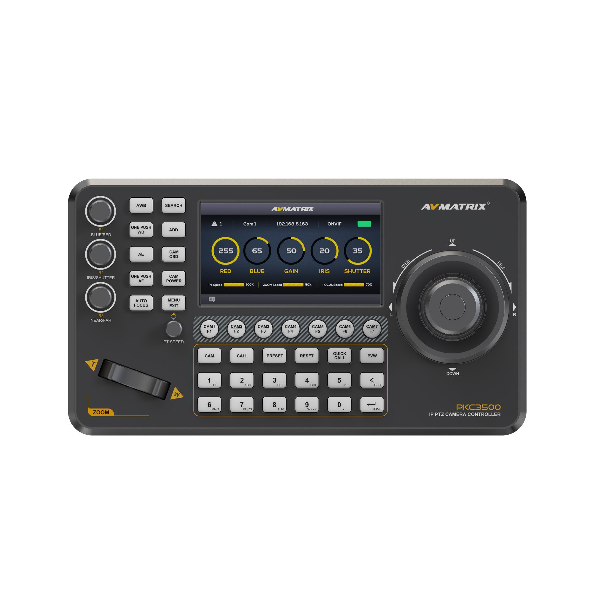 AVMATRIX PKC3500 – профессиональный контроллер PTZ-камер, который поддерживает управление по протоколам RS-422/RS-485/RS-232/IP и подключает до 255 камер. Обеспечивает возможность управления панорамированием/ наклоном / зумом и фокусировкой камеры, балансом белого, экспозицией. Более сложная настройка камеры предусмотрена в интерфейсе управляемой PTZ-камеры, которая широко используется в образовании, конференциях, телемедицине, медицинских услугах и других отраслях промышленности.