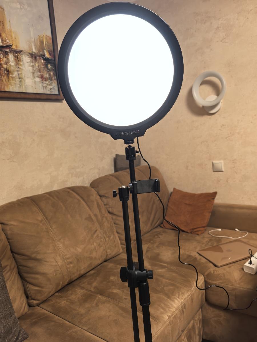 Комплектация набора: Лампа, шаровая головка 2шт., USB-C кабель, стойка с перекладиной, зажим для смартфона.