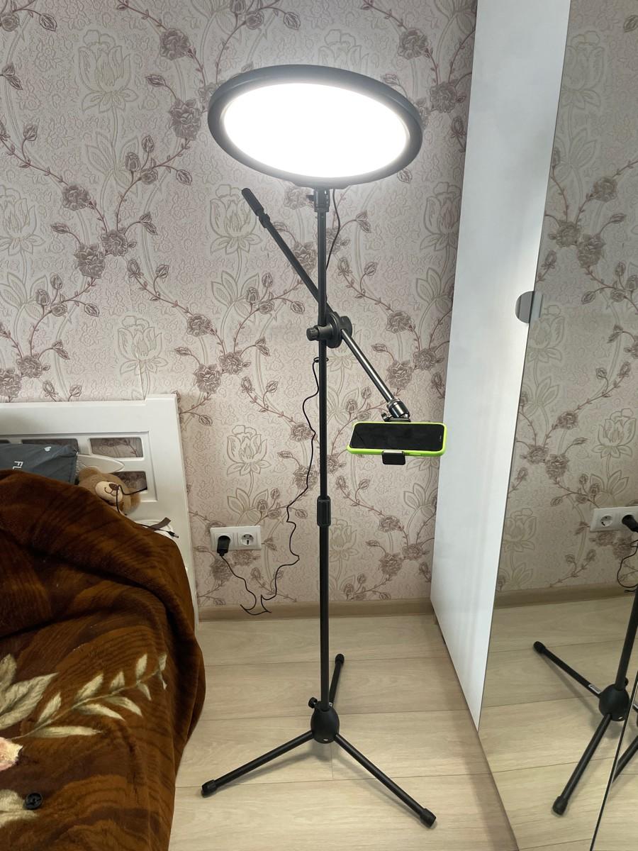 Fujimi FJL-FL12PRO+FTS - Комплект для фото-видео съёмки включающий в себя: 12-дюймовый заполняющий свет в комплекте с напольной стойкой 133 см и креплением-штангой для установки смартфона.