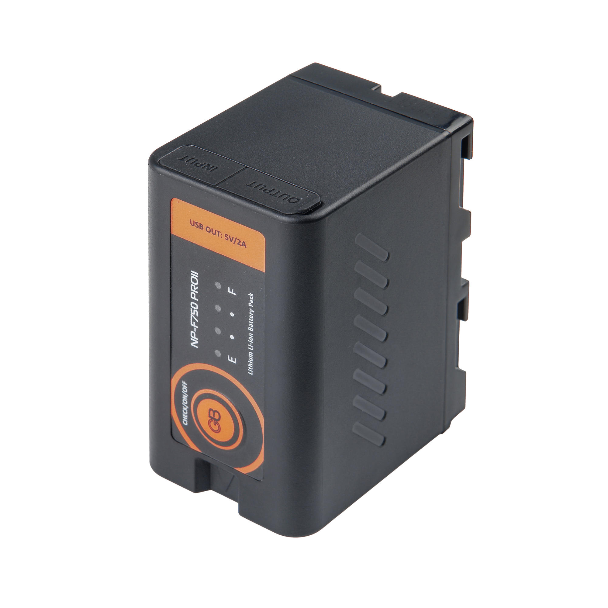 Модель NP-F750 PROII имеет функцию проверки заряда: при нажатии кнопки «Check» четыре светодиодных индикатора показывают уровень заряда батареи.