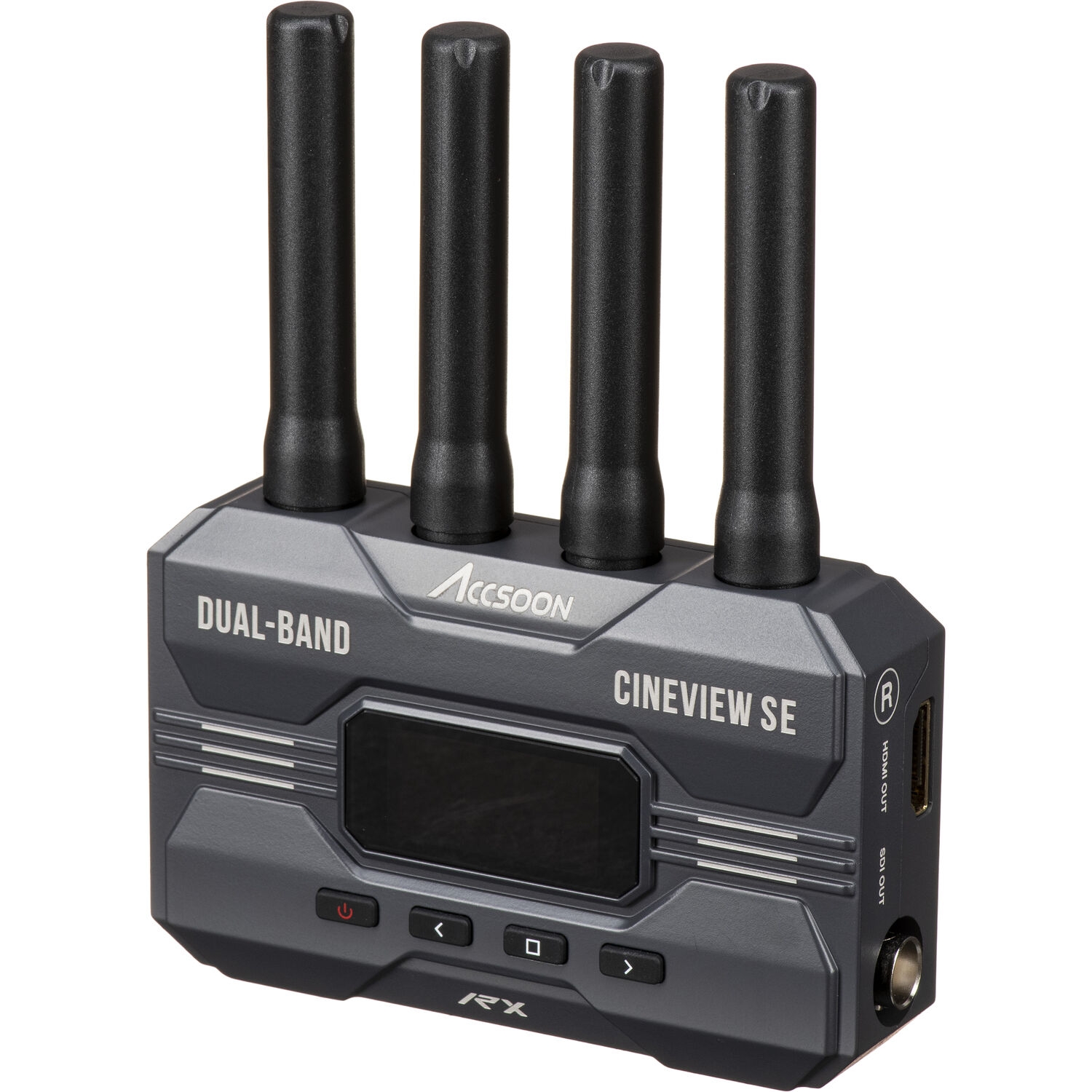 Приемник CineView SE RX использует двухдиапазонную технологию передачи сигнала, которая позволяет принимать потоковое видео по Wi-Fi на частотах 2,4 ГГц и 5 ГГц одновременно. Устройство интеллектуально идентифицирует помехи и объединяет два потока для формирования полного аудио- и видеопотока.