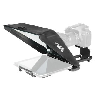 Телесуфлер подходит для съемок на цифровые камеры DSLR и мини-ENG. Камера устанавливается на выдвижную площадку за экраном, тканевый чехол закрепляется на объективе. На передней площадке размещается планшет или смартфон с заготовленным текстом. Площадка имеет подвижный зажим и по ширине варьируется от 16 до 21,5 см, длина составляет 24 см.